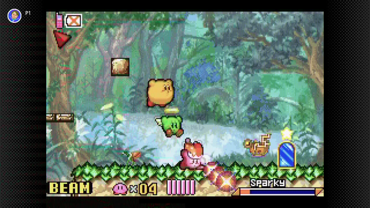 Unfortunately, that's not the worst of the problems with Kirby & The Amazing Mirror. One conceit is that Kirby has been split into four entities of different colours, and let's just say that the traditional pink Kirby must have all the brains. The other three Kirbys chaotically bound about, far more irritating than they are helpful. You can't control them, so you just need to let them dominate the screen with their antics as they steal powers you wanted, get in your way, and even budge you into enemies and hazards.