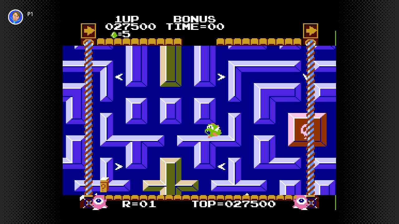 There are three different stage types that crop up per round, ensuring variety, albeit in a rather formulaic way. Upon completing the first stage â which revolves around eating Boa-Boa dots â youâre next tasked with collecting four bibles and placing them into the Devilâs seal in order to close it. Bibles dish out the same fire-breathing powers as crosses, so youâre still able to attack enemies in this stage should you need to. Following this, a bonus stage appears in which you have to collect up to six bonus boxes. Here, youâre able to control the direction in which the screen scrolls by walking over arrow panels on the floor; only through the efficient use of these can you acquire everything.