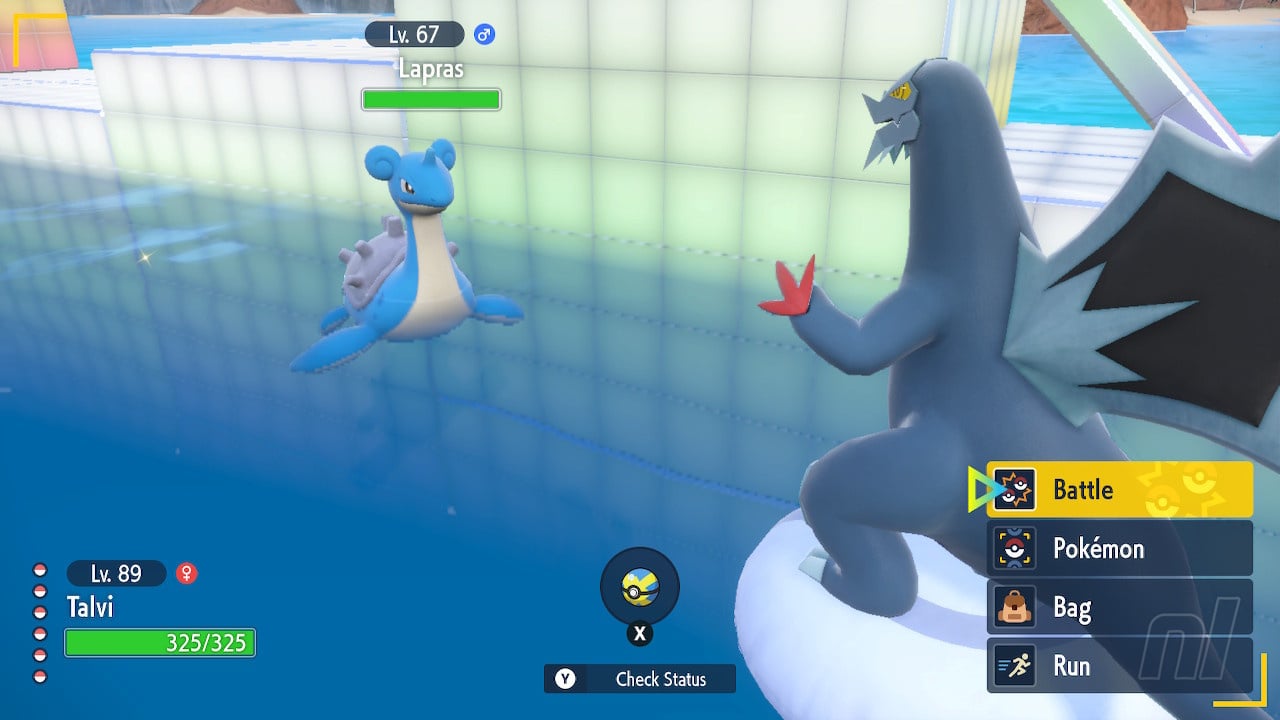 So then, we can't ignore the Cufant in the room anymore: performance. No, the performance and visuals haven't been improved â in fact, we think they might be even worse in the Terarium than anywhere else in the game. During cutscenes, the camera would frequently stagger and pause as it panned across the screen. Exploring the Terarium is still sluggish and slow as the frame rate dips frequently as you jump, dive, and glide around the area. The draw distance remains pretty abysmal, and sometimes, youâll see a Pokemon close by that hasn't fully rendered, instead appearing very blocky. Pokémon running into walls, Pokémon spawning in walls â you name it, it's probably there. We hate to bring it up yet again, but with every major update, it feels like Scarlet & Violetâs duct tape is slowly peeling off.