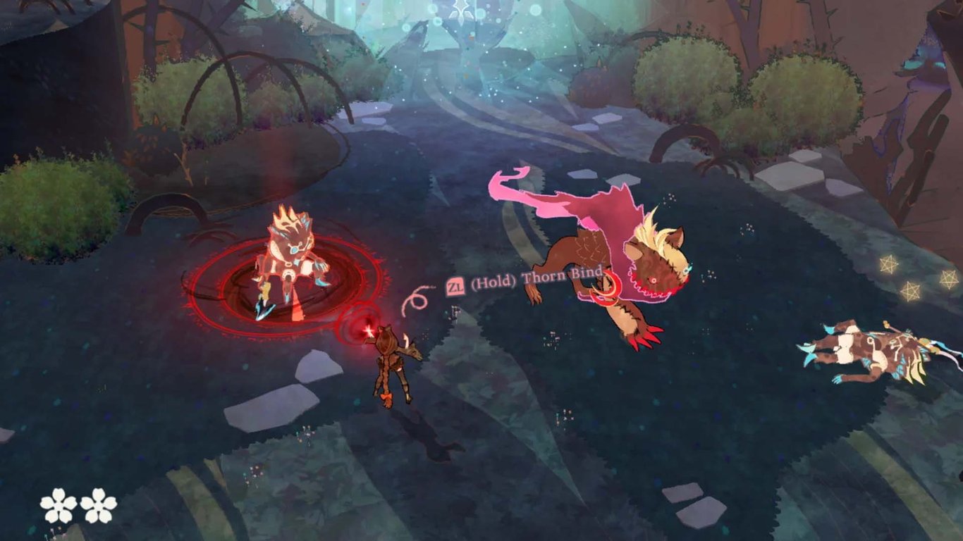 Each dungeon literally took me to "another dimension" and is full of puzzles, loot chests and enemies, just like the shrines we saw in The Legend of Zelda: Breath of the Wild. Although after the middle of the game these "shrines" are somewhat repetitive, I did them because I gained a "piece" each time to top up Cereza's total life flower (think of it a bit like Zelda's hearts).